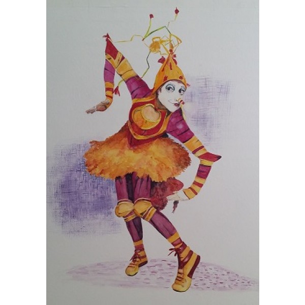 Erg vrolijke en zeer levendige uitbeelding van een personage uit het bekende theaterstuk Cirque du Soleil, Parijs, Frankrijk. Stijlvol dansend en losjes swingend gaat deze persoon door het leven, een prachtige toekomst tegemoet. Een dergelijke uitstraling doet ons onmiddellijk denken aan een karaktervolle Malbec uit Argentinië. Die druif gaat volgens insiders ook een prachtige toekomst tegemoet en geeft ons het gevoel "dat er een engeltje over je tong fietst".