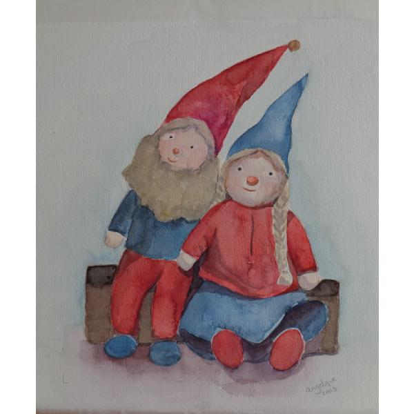 Een sfeervolle en gezellige impressie van kabouterliefde. Leuk als decoratie voor op de kinderkamer of gezellig in de woonkamer. Deze vriendjes doen ons denken aan ons assortiment mini-flesjes voor onze kleine(re) gebruikers. (schildering is niet meer beschikbaar. Zie onze pagina "waar gebeurd")