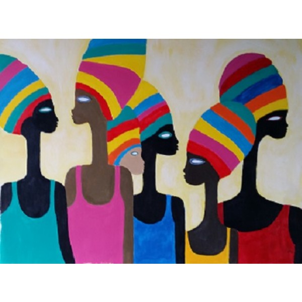 Geweldig altijd die kleurrijke Afrikaanse kleding! Let eens op de variaties en de kleurschakeringen in deze aquarelschildering. Prachtig en rijk afgewisseld.